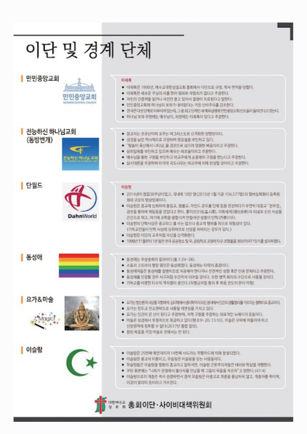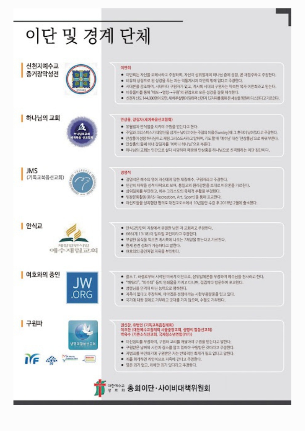 경계단체목록 대한예수교장로회통합 성경사전 이단경계주일 주요이단