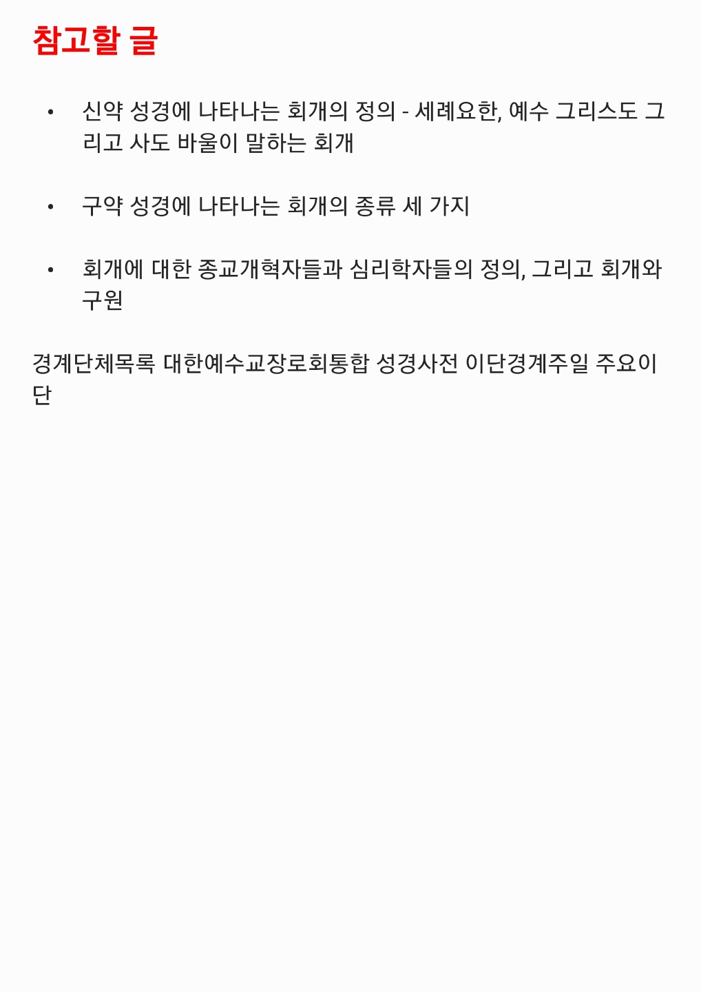 • 구약 성경에 나타나는 회개의 종류 세 가지